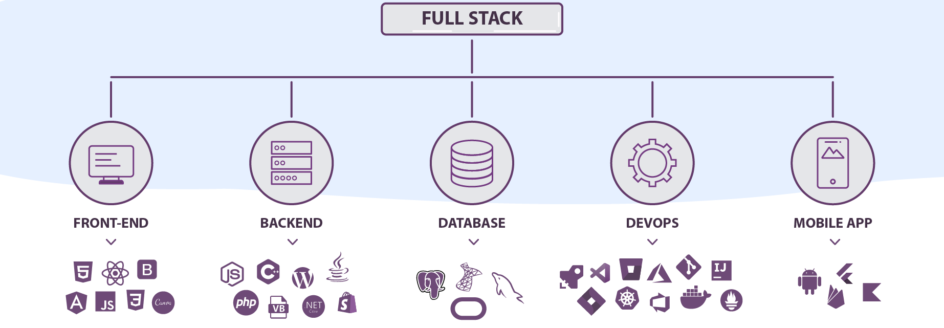 We have expertise with front-end and back-end technologies, including React, Angular, Node.js, Python, .NET, C/C++, JAVA, PHP, SQL, jQuery, and more.